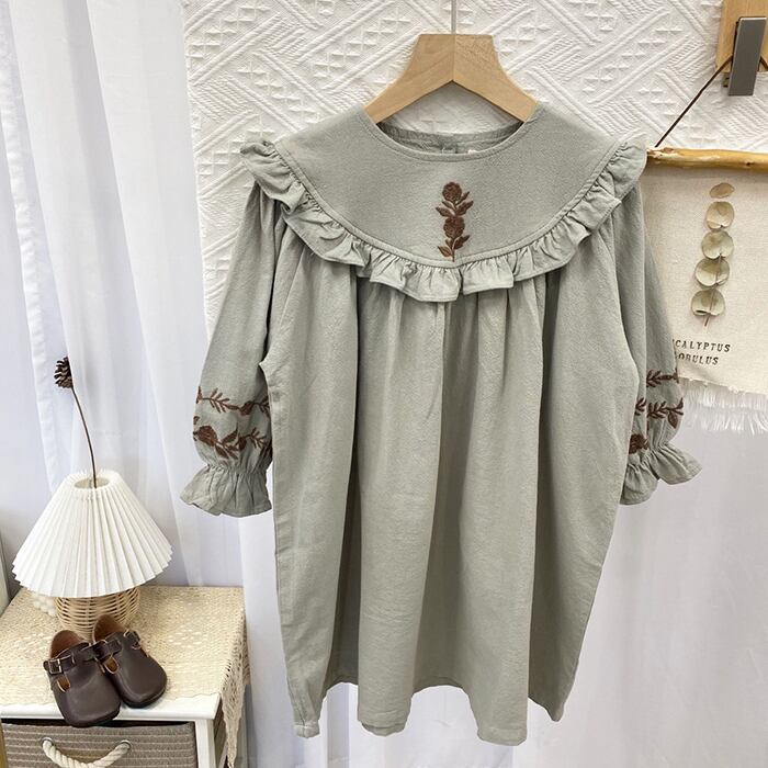 こちらは刺繍とフリルのコットンリネン春ワンピース♡