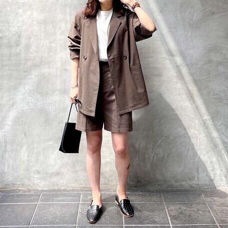 リネンブレンドに新しく今季トレンドのハーフパンツが登場!