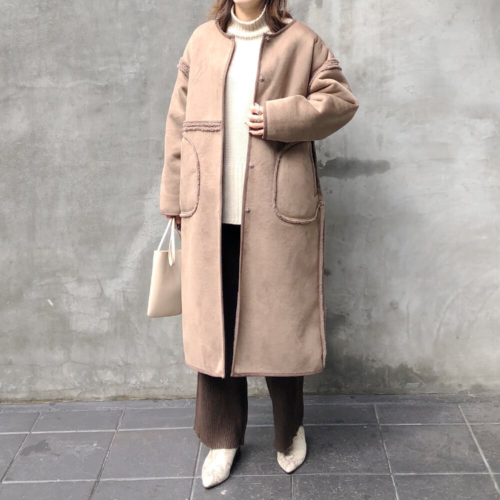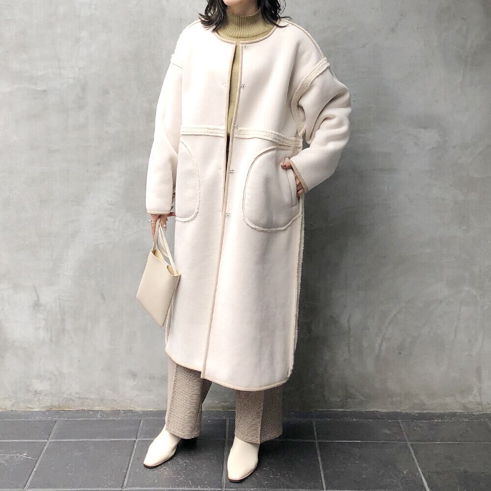 暖かみのある、ボアコートにもできるリバーシブル仕様で着回し力もUPオーバーサイズでゆったりとしているのに軽い素材感で着心地◎