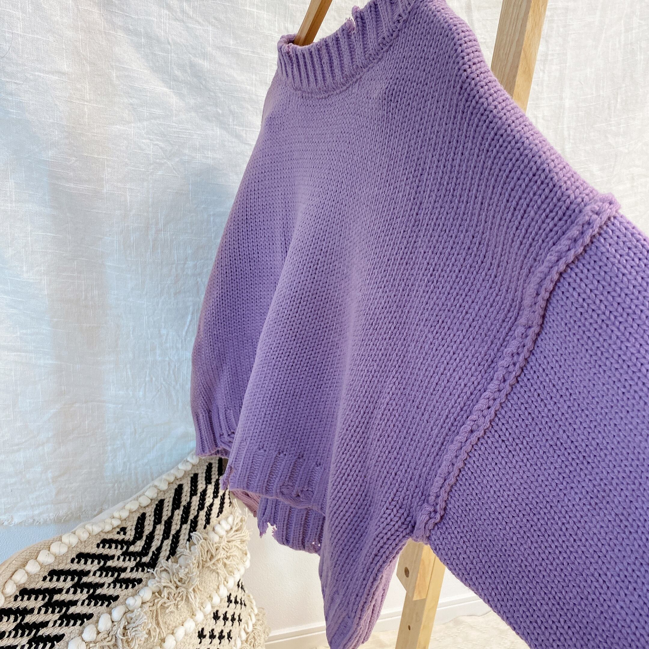 今年らしいダメージ加工が印象的なクロップドニットPO!