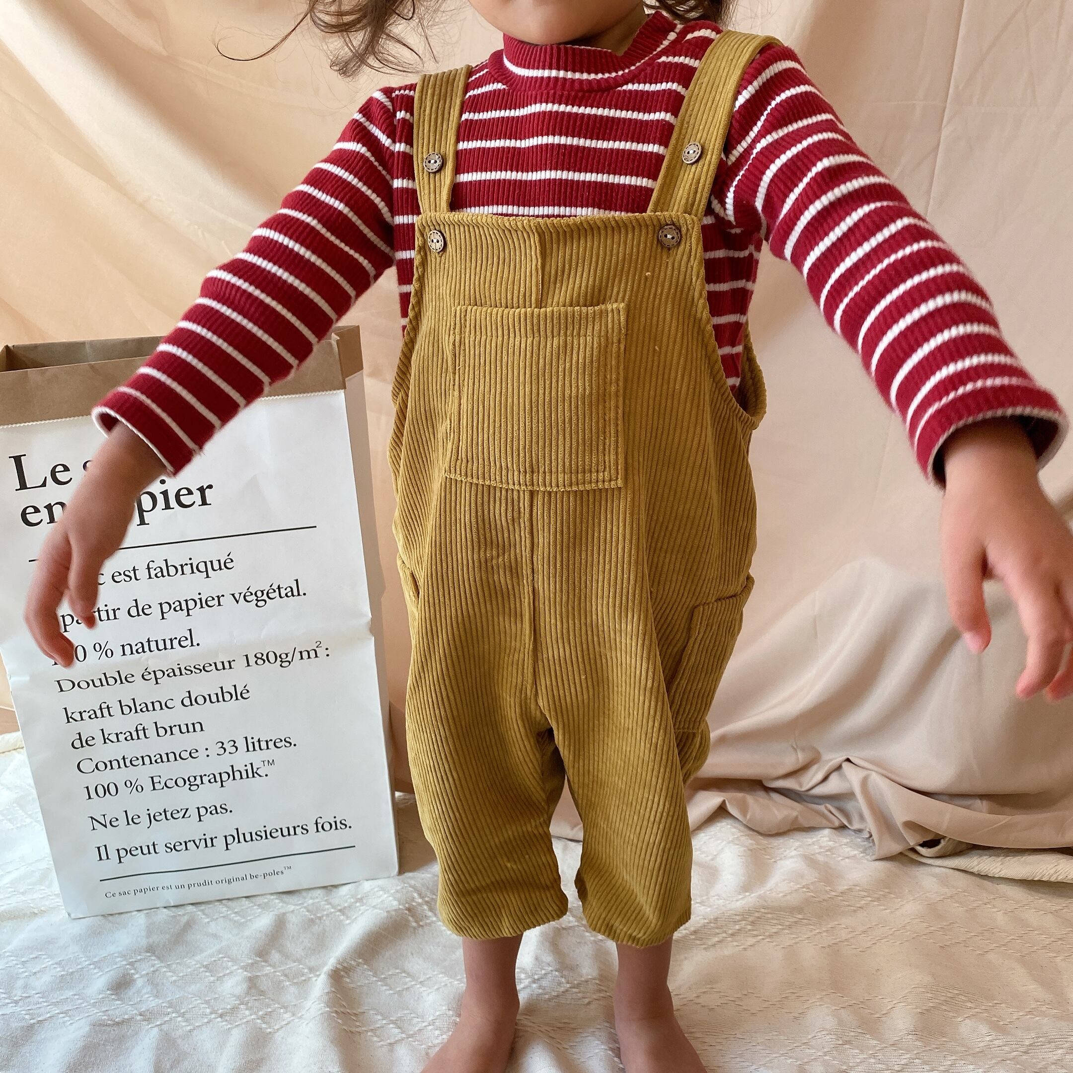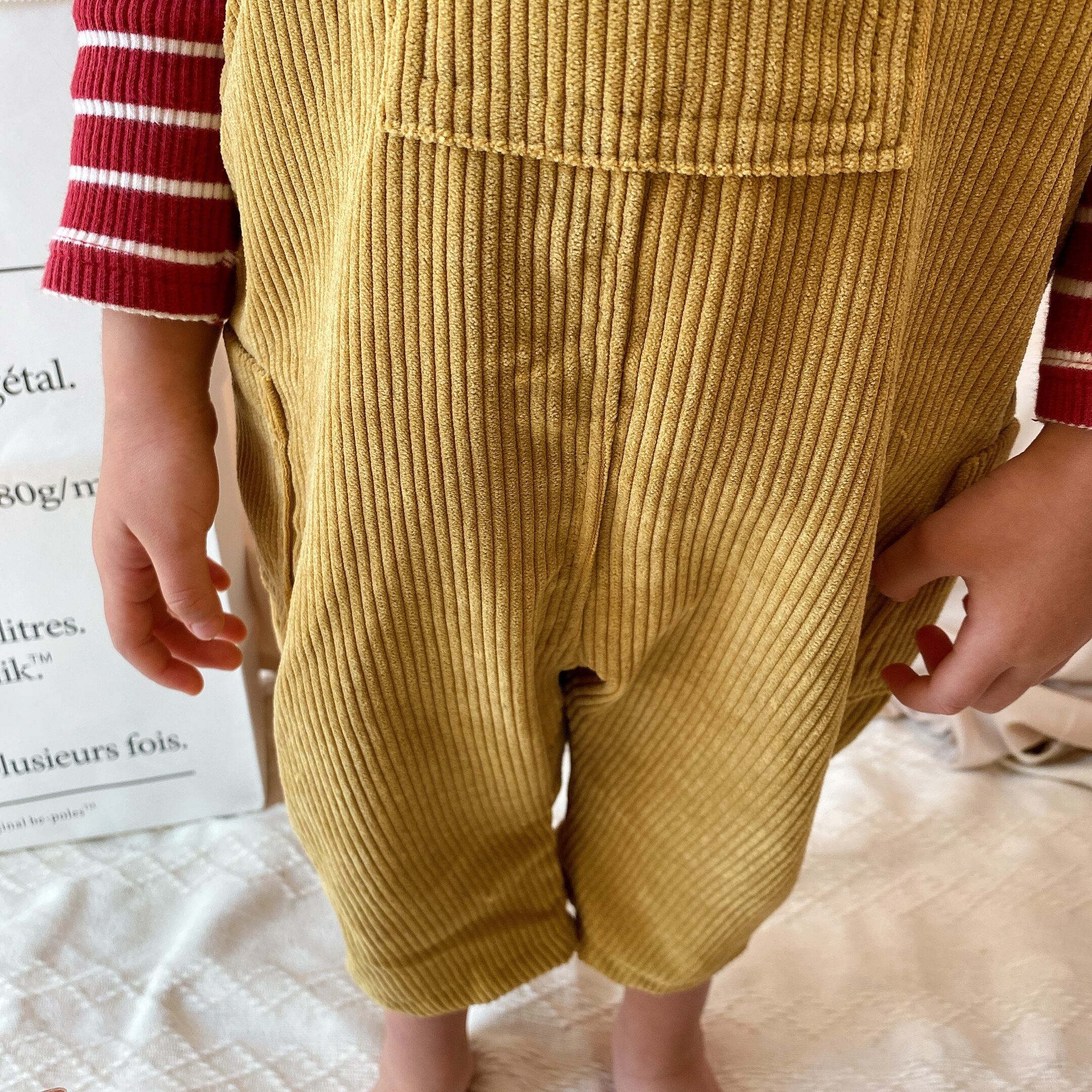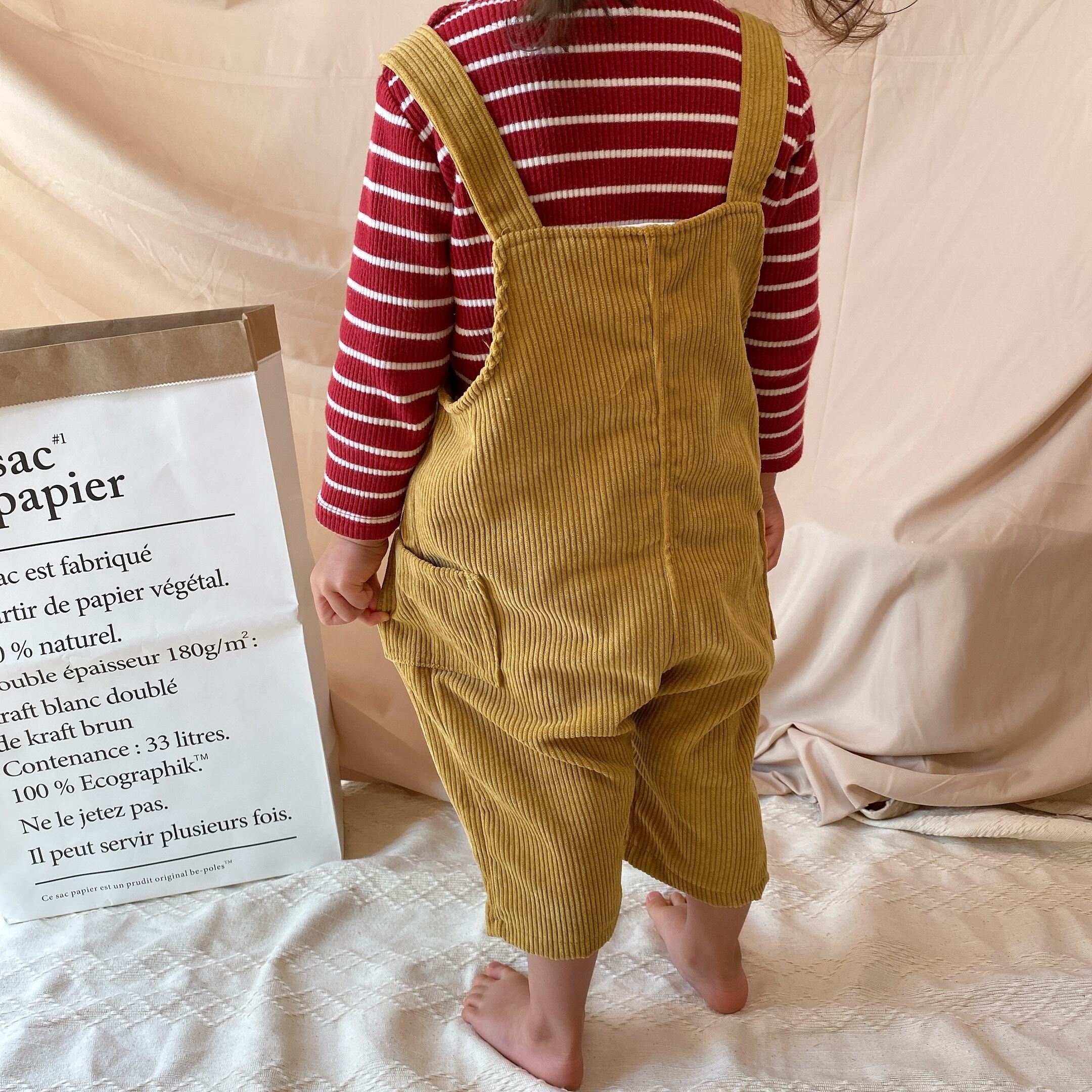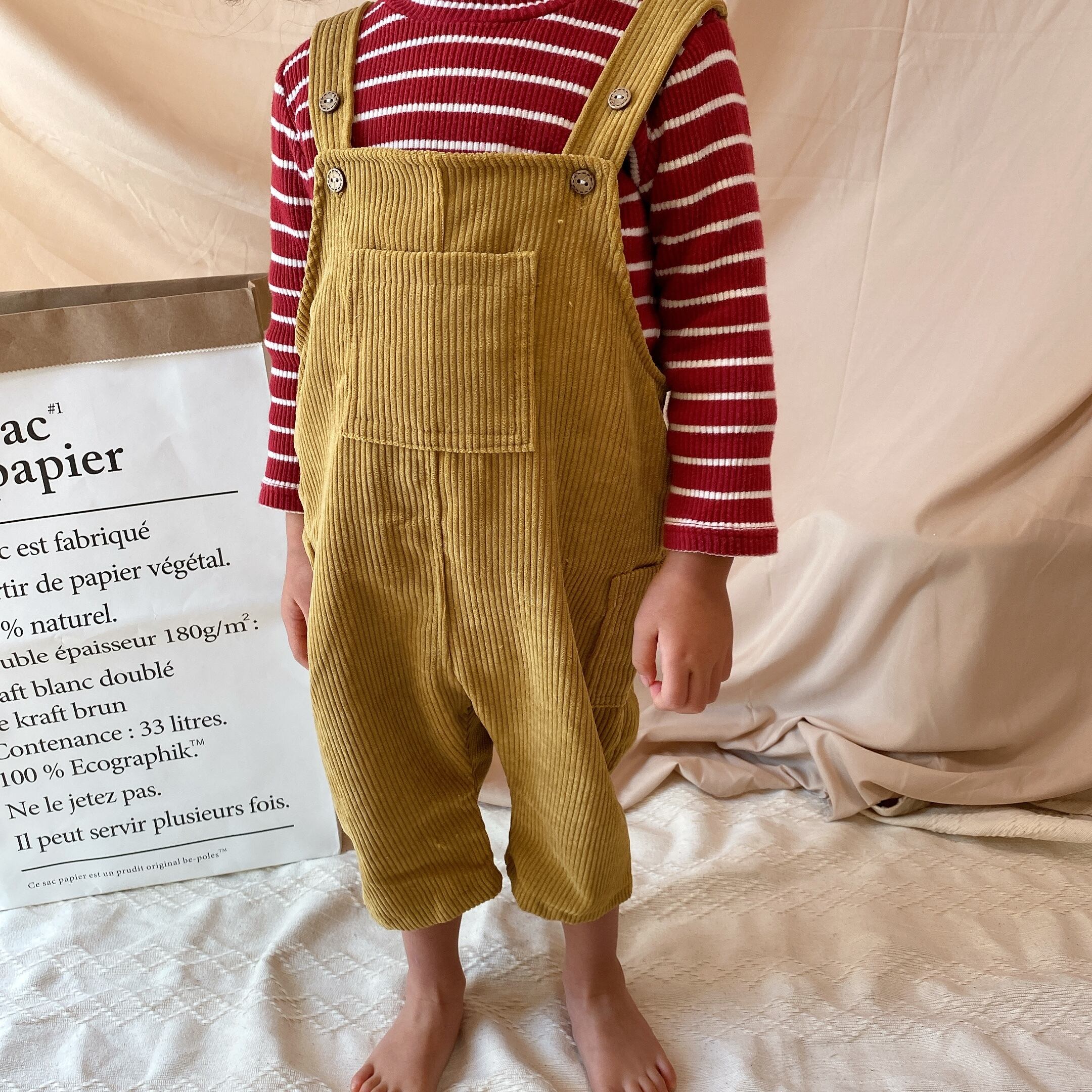 こちらはポケットがフロントサイドについているコーデュロイのオーバーオールです。