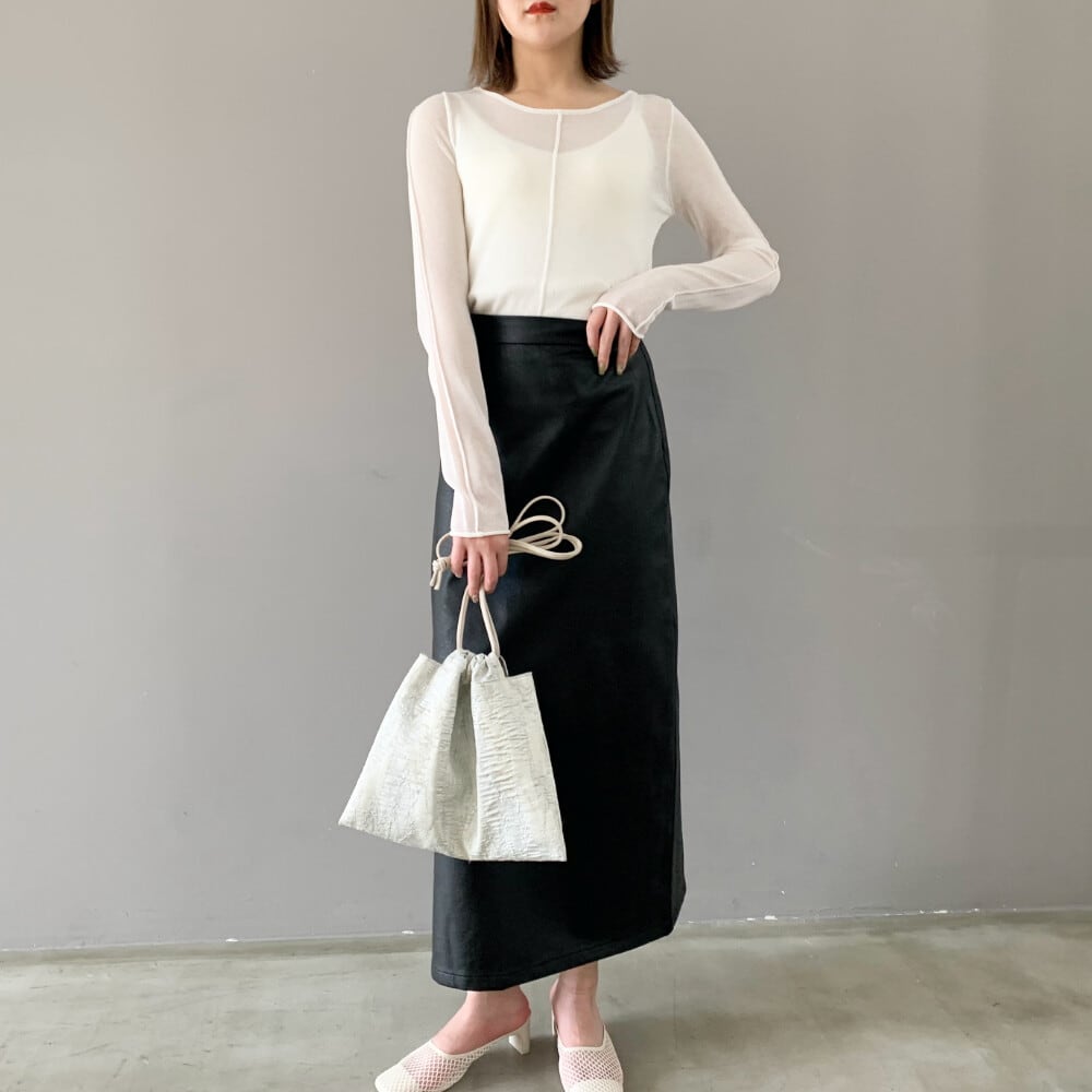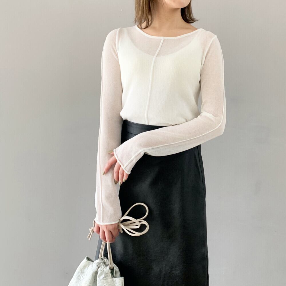 シアーニットならではの上品な透け感が女性らしさを演出します。